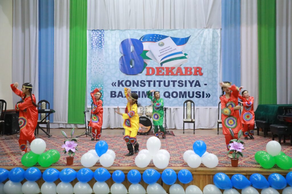 2024 yil 7-dekabr kuni G‘uzor tuman 4-son bololar musiqa va sana’t maktabida O‘zbekiston Respublikasi Konstitutsiyasi qabul qilinganining 32 yilligiga bag‘ishlab, o‘tkazilgan bayram tadbiridan fotolavha