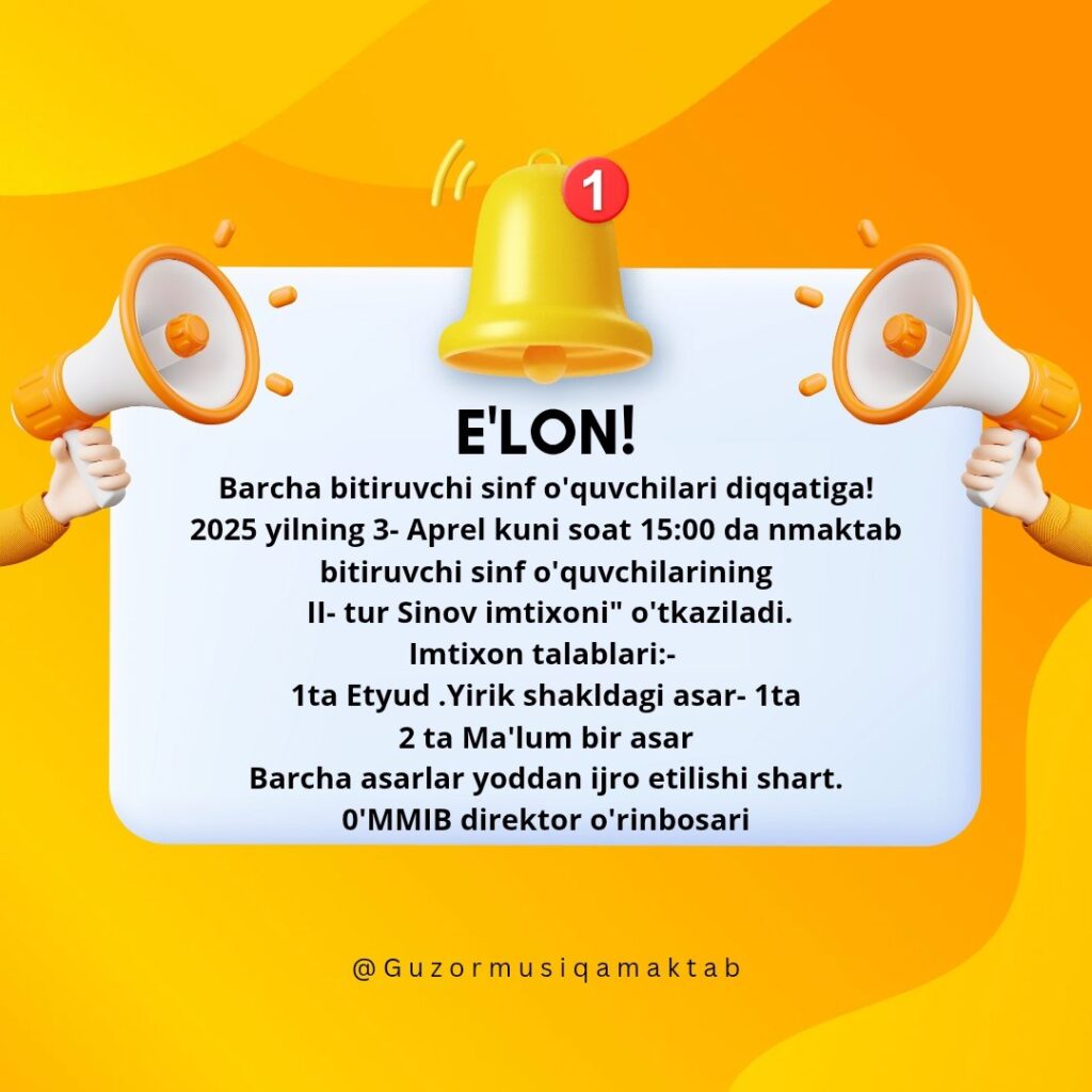 Barcha bitiruvchi sinf o’quvchilari diqqatiga!