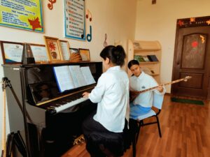 Musiqa inson qalbiga nur va zavq bag‘ishlaydi. Ayniqsa, milliy cholg‘ularimizni o‘rgatish jarayoni yosh avlodni Vatanga muhabbat, milliy qadriyatlarimizni e’zozlash ruhida tarbiyalaydi. Shoberdiyeva Dilobar o‘z darslarida dutor cholg‘usining sir-asrorlarini o‘quvchilarga puxta o‘rgatib, ularning nafaqat kasbiy mahoratini, balki musiqiy did va estetik tafakkurini ham rivojlantirishga alohida e’tibor qaratmoqda.
