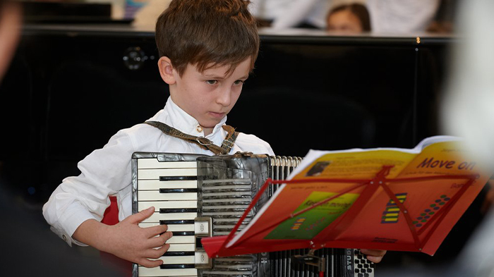Akkordeon mutaxassisligi, o‘quv davomiyligi 5 yil bo‘lib 1-2 sinf o‘quvchilari boshlang‘ich, 3-5 sinf o‘quvchilari yuqori sinf o‘quvchilari hisoblanadi.