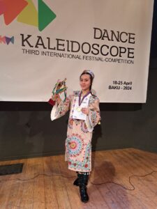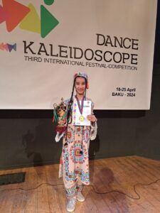 🇦🇿 Ozarbayjonning Baku shahrida boʻlib oʻtgan xalqaro (https://t.me/Kitob10BMSM/3579) raqs tanlovida ishtirok etib 1-o’rinni qo’lga kiritdi.