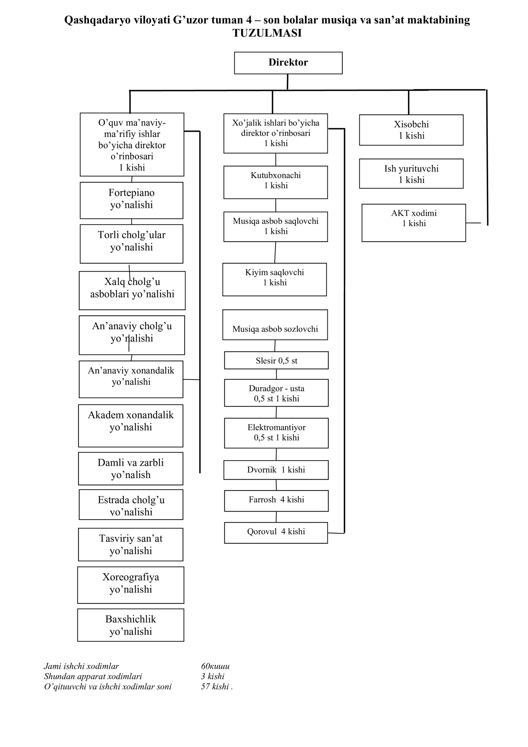 Maktabda musiqa yo‘nalishi bo‘yicha , jumladan: qashqar rubobi, doira mutaxassisligi, g‘ijjak mutaxassisligi, dutor mutaxassisligi, chang mutaxassisligi, akkordeon mutaxassisligi, nay mutaxassisligi, saksafon mutaxassisligi, fortepiano mutaxassisligi, an’anaviy xonanadalik, an’anaviy sozandalik, estrada xonandaligi, skripka mutaxassisligi. San’at yo‘nalishi bo‘yicha , jumladan: baxshichilik san’ati, milliy raqs, tasviriy san’at, amaliy san’at bo‘yicha tumanimizning o‘g‘il va qizlari bilim olishmoqda. Maktabda asosiy asbobni o‘rganish bilan birgalikda solfedjio, musiqa adabiyoti, tanlangan fanni o‘rganish, umumiy fortepiano, notani varoqdan o‘qish, ansambl, orkestr va xor, maqomchilar ansambli kabi fanlar o‘rgatiladi.